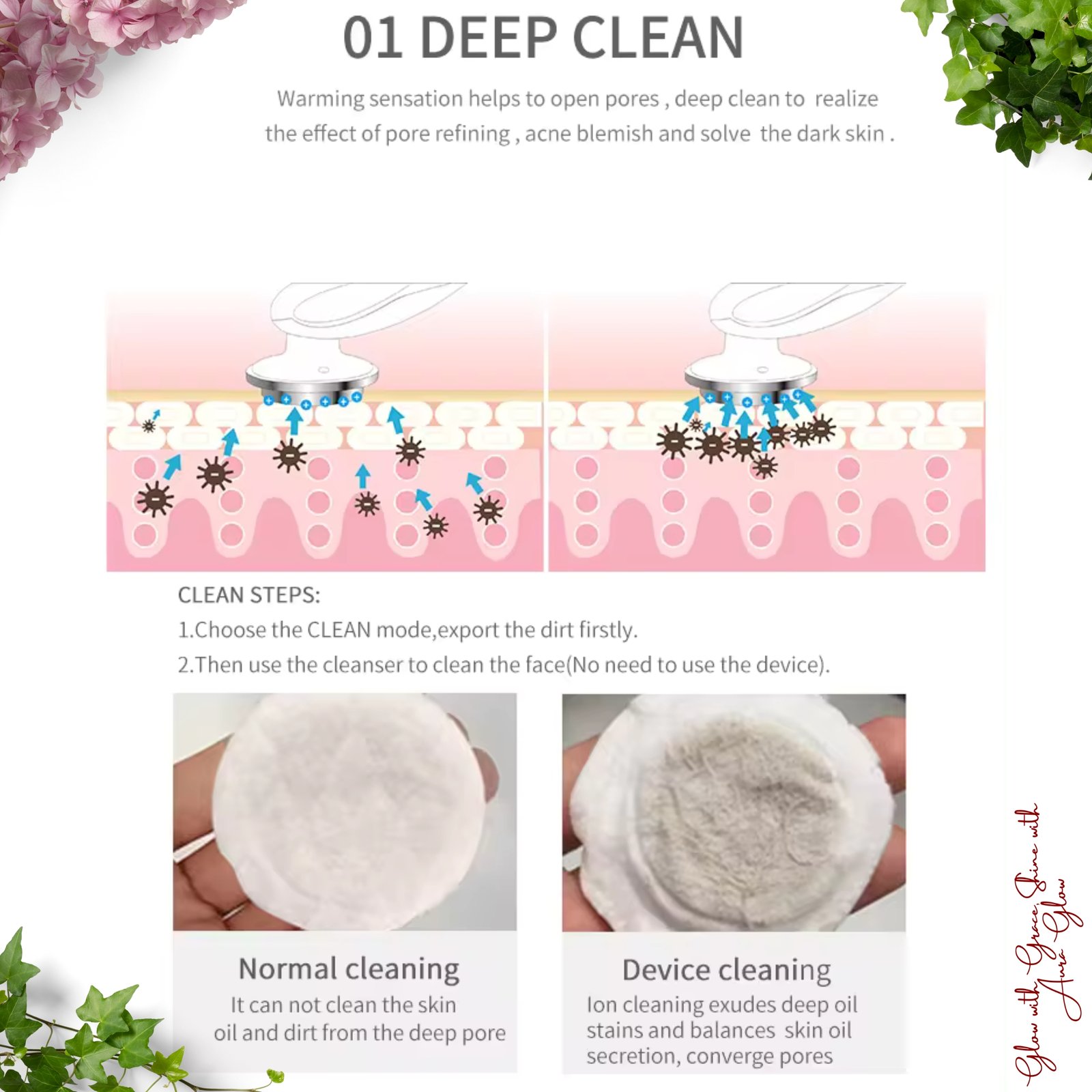 - Galvanic Ionic Cleansing: Deeply cleanses pores by drawing out oil, dirt, and makeup residues, minimizing pore size and enhancing skin clarity.