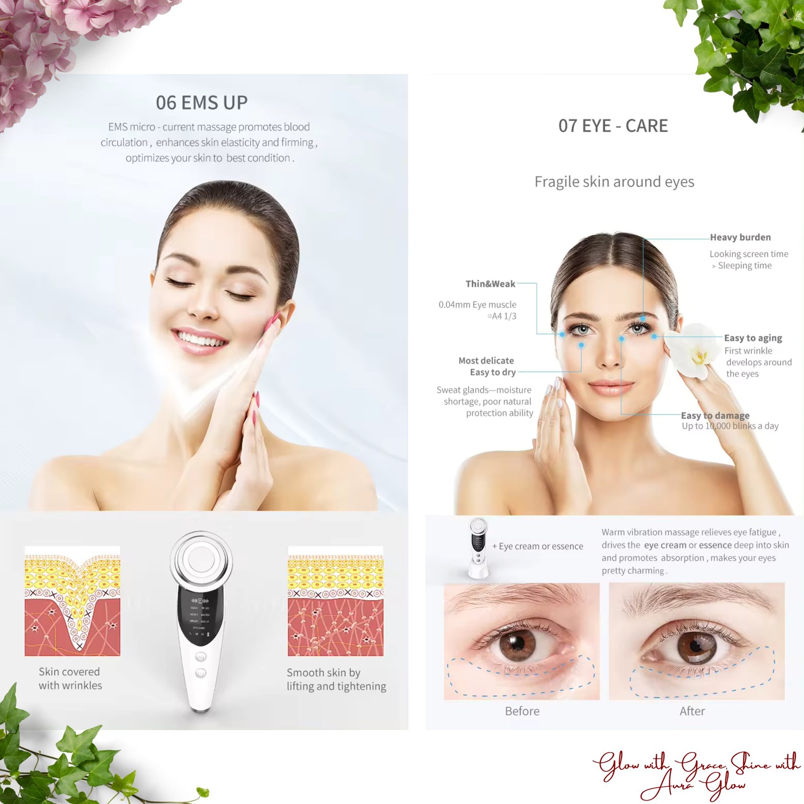 Why Choose AuraGlow? AuraGlow stands at the forefront of skincare innovation, offering multifunctional beauty gadgets that allow you to enjoy professional-level facial spa treatments from the comfort of your home. With a year-long warranty and dedicated customer support, your journey towards a more beautiful, confident you starts here.